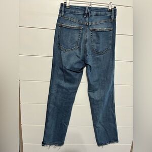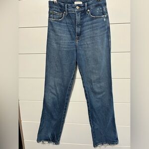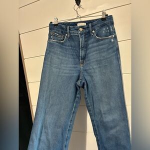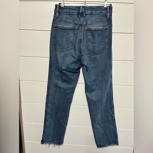 Classic straight leg jeans. Comfortable fit. Just a touch tighter than I was hoping for but in great shape and a really soft and comfy denim.