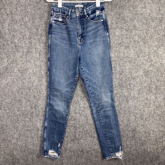 Good American Good Curve Jeans Womens Size 6 / 28 Blue Distressed Stretch