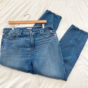 Good American Good Curve Straight Jeans Blue High Rise Raw Hem Size 18 EUC
