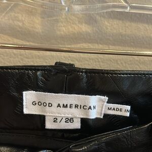 Good American Good Icon Black Eel Faux Leather Pants. Straight leg. Very good condition. Size 26/2