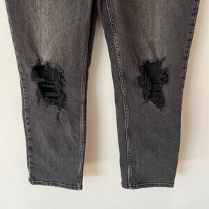 Good American Good Icon Cropped Straight Jeans Charcoal Gray Black- Women's Size 10/30. Faded black wash, knee holes, high rise, stretch denim. In good condition.