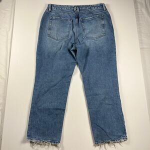 Good American Good Icon Cropped Straight Raw Hem Jeans 27" Inseam Size 14