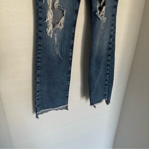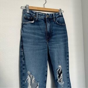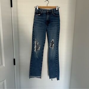 Good American Good Icon High Waisted Jeans Distressed Step Hem Size 24 Women’s