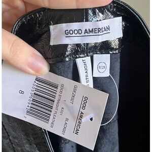 Good American Good Icon Straight Faux Leather Pant in Black Size 8 NEW!