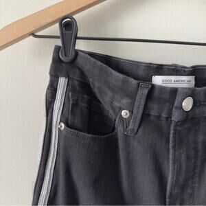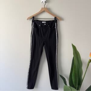 Good American Good Legs Black Skinny Jeans silver sparkle Side Stripes stretch 6