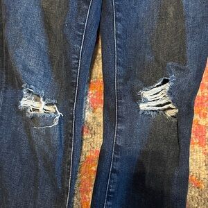 Elevate your style with these dark blue distressed skinny jeans. Perfect for a chic, casual look. Size 6/28