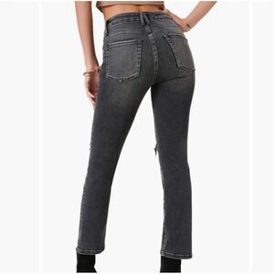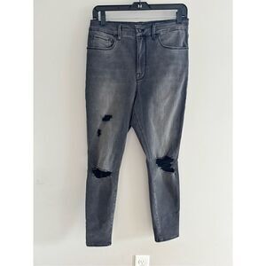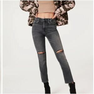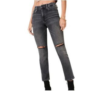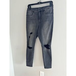 Good American Good Legs Crop Straight Jeans, Size 10 / 30 Gray Black Distressed