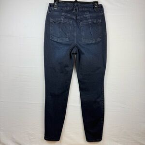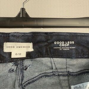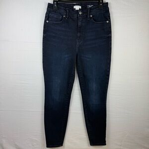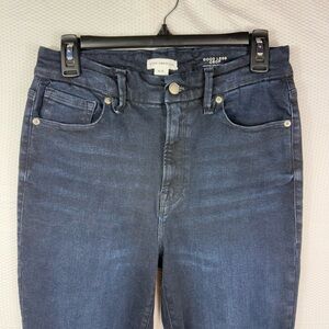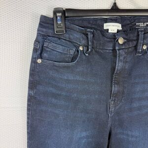 These Good American skinny jeans in a rich blue hue offer a sleek and modern fit. Crafted with a touch of stretch, they provide comfort and style for any occasion. The dark wash adds a sophisticated touch to your wardrobe.