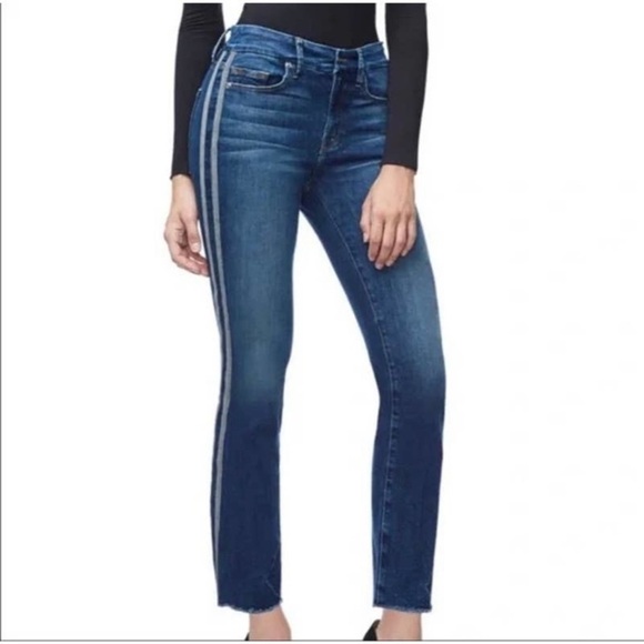 Good American Good Legs Double Side Stripe High Rise Blue Jeans - 10/30