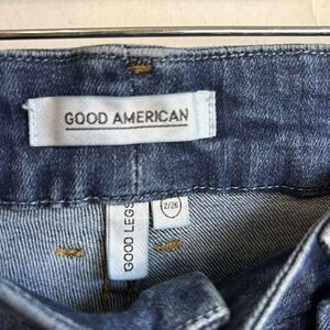 Excellent condition no flaws GOOD AMERICAN Good Legs Jeans Pants Side Stripes Medium Wash Denim GLCA899T High rise High waisted Stretch Cotton, Polyester and Spandex material blend major signs of wear Approx Measurements: Laying Flat Waist: 13 in Rise: 10.5 in Inseam: 26 in Ankle Opening: 5 in Style No. GLCA899T