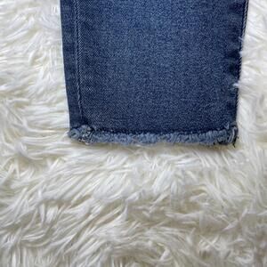 This is a pair of women’s good American good legs stretch jeans dark wash with a raw fringe hen size is zero 25. It is a zipper fly with button jeans are an excellent preowned condition. There are no rips stains or holes. Please see photos for measurements and further details P72.