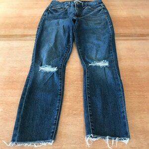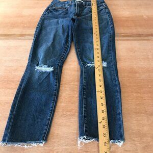 Good American Good Legs Jeans Women 6/28 Blue Distressed Raw Hem Medium Wash 17838