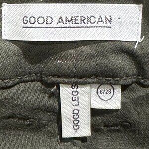 Good American Good Legs Skinny Stretch Olive Green Coated Jeans Size 6/28 Style# GL403T. These jeans are made of 91.5% Cotton, 6% Polyester, 2.5% Spandex. They measure Waist (lying flat) 14", Rise 11", Inseam 28". These jeans are in great, used condition. Ships from a Smoke Free Home. Any questions, please ask. All reasonable offers welcome.