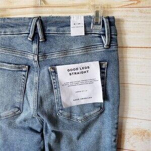 Good American Good Legs Straight Cotton Distressed Denim Jeans Women's Size 6/28