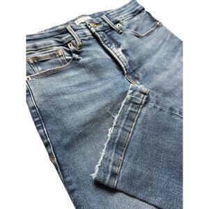 Good American “Good Legs Straight” jeans with a flattering fit and raw hem detail. Stretch denim ensures comfort and shape retention.