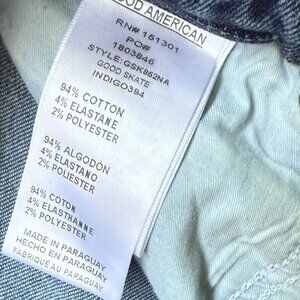 These Good American “Good Skate” wide-leg jeans are the perfect mix of style and comfort. Designed with a flattering high-rise waist, medium indigo wash, and soft stretch cotton blend, they give a polished yet relaxed look for any season. Easy to dress up with heels or down with sneakers — your new favorite pair!
