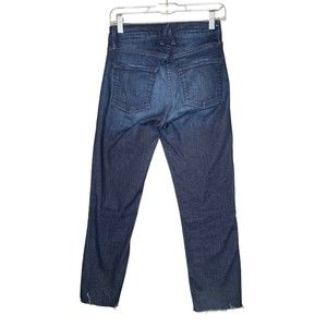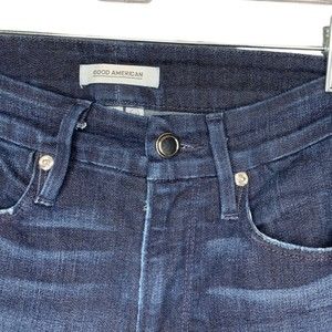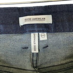 Good American Good Straight Dark Wash Distressed Raw Hem Jeans 0/25 Mid Rise
