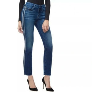 Good American Good Straight Jeans Athletic Stripe Raw Hem Size 28 6