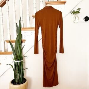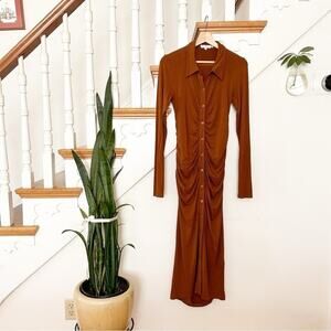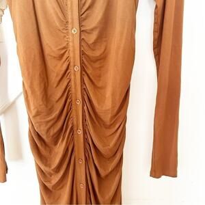 Good American Good Touch Button Front Midi Burnt Caramel Long Sleeve Ruched Sz 2
