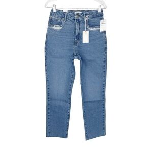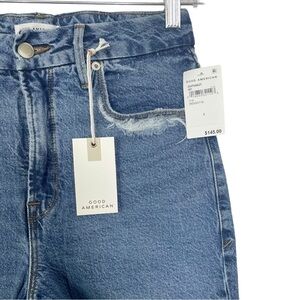 Good American Good Vintage Fray Jeans Straight Leg Medium Wash NWT