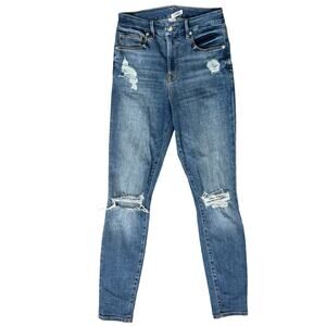 Good American Good Waist Blue Medium Wash Distressed Snake Pocket B322 sz 2 / 26