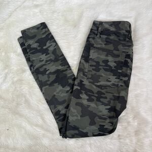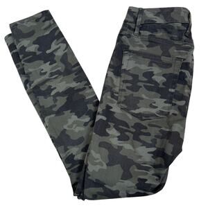 Green camo printed denim (91% Cotton, 9% Elastane). Jeans. Hidden zipper fly with button closure. Skinny Fit. Pockets. Sits at natural waist.