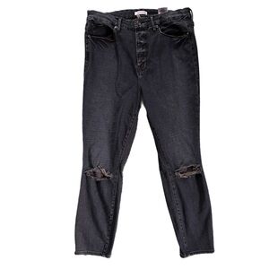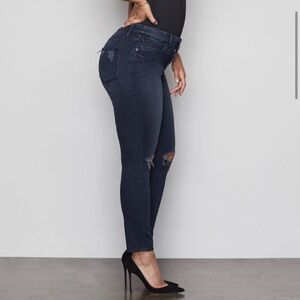 Rich indigo over dyed wash with double destruction on the knees (extra from wear) and back pockets.