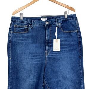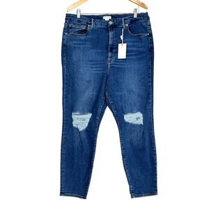 Good American Good Waist Crop Jean Plus Sz 20 High Rise Distressed Stretch Denim
