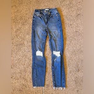 Good American Good Waist Crop Raw Edge Blue Size 00/24 Women’s Distressed Jeans