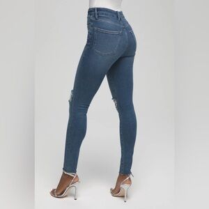 he classic Good Waist jeans with a cropped length. High rise skinny fit stretch jean that nips you in at the waist.