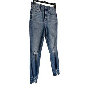 Good American Good Waist Crop Size 2/26 Medium Wash Distressed Legs NWT