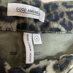 Good American Good Waist Crop in Sage Green Leopard Size 16