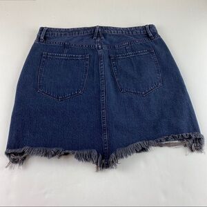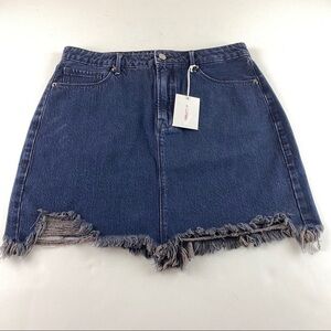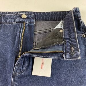 Good American Good Waist Frayed Hem High Waist Denim Mini Skirt.