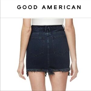 Good American Good Waist Frayed Hem High Waist Denim Mini Skirt.