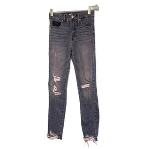 Good American Good Waist Jeans Blue Released Chewed Hem Distressed 0 25