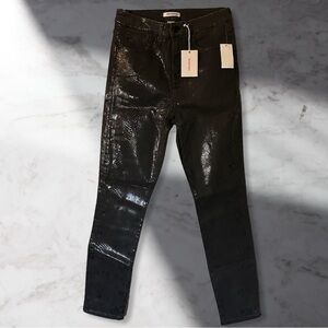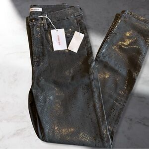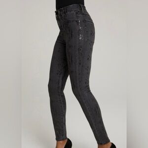 New, never worn Good American Good Waist foil appliqué skinny jeans. Color: black. Size 10