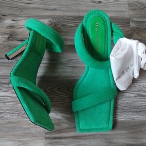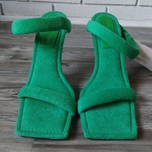 Good American Green Terry Cloth Square Toe High Heel Pumps Women's Size 11