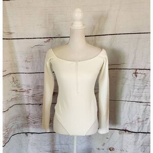 Good American Half Zip Ribbed Bodysuit Size 3/ US 8 NWT