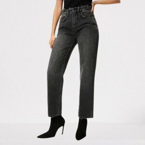Good American High Rise Cropped Straight Leg Washed Black Jeans Size 30