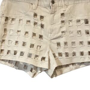 Stylish high waist shorts. Cream color with unique cut-out design. Perfect for casual wear.