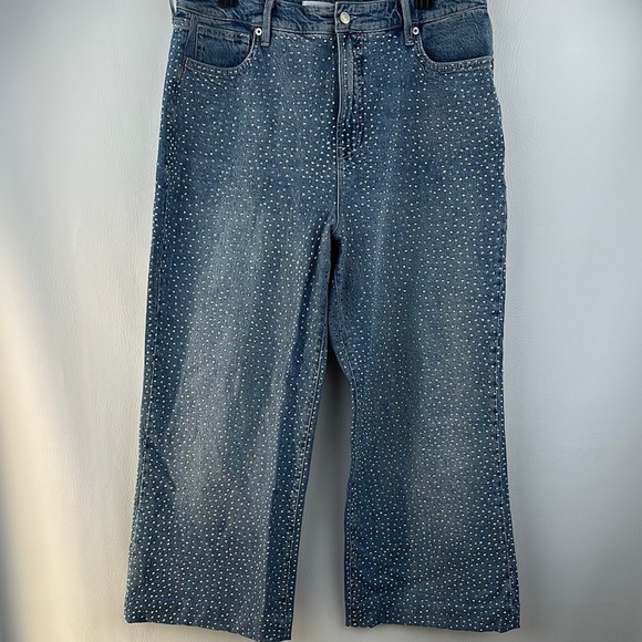 Good American High Waisted Wide Leg Cropped Sequin Denim Jeans