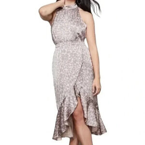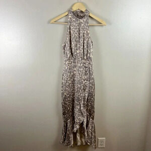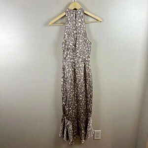 Good American Honey Leopard Midi Halter Dress Size XS Ruffle Hem Sexy Party