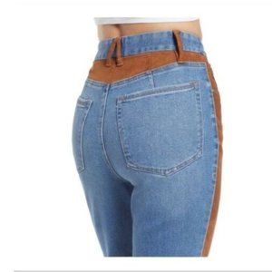 Good American Icon Mixed Media Denim & Faux Suede Pants Size 29 NWT