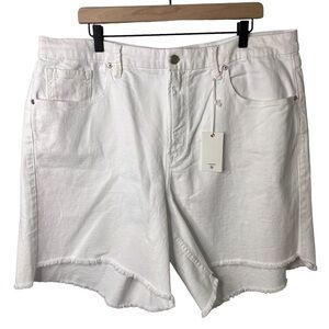Good American Icon Shorts White Denim Plus Size 18 High Rise Raw Hem Bermuda