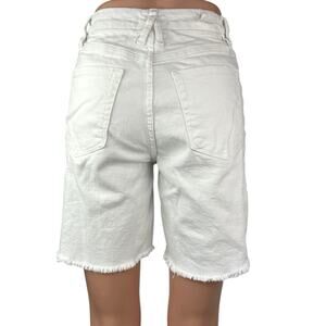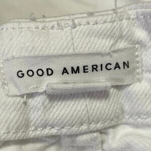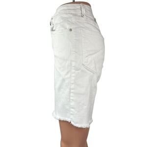 Good American Icon White Denim Mid Rise Crop Raw Hem Bermuda Jeans Shorts Sz 25