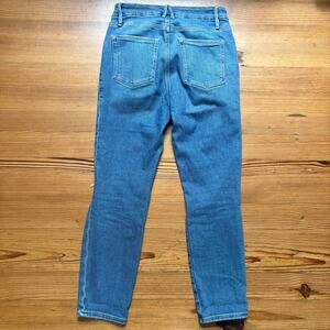 Good American Indigo high rise medium wash distressed ankle jeans SIZE 8
