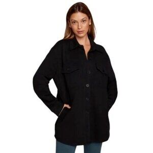 Good American Jacket Womens 1/2 S/M Black Terry Button Up Shacket Boyfriend y