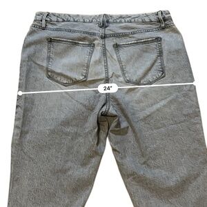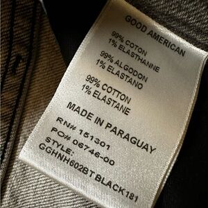 The product is a pair of Good American Jeans in size 16, featuring the Good Girlfriend High Waist style with a distressed black color. These jeans have a solid pattern, zip and button closure, and are made of a cotton blend denim fabric with a light wash. The high rise waist and regular fit make them flattering and comfortable for everyday wear. With a 5-pocket design and a 27-inch inseam, these jeans are a stylish and versatile addition to any woman's wardrobe.