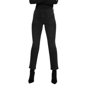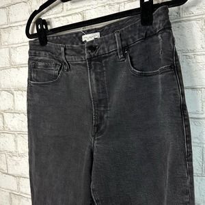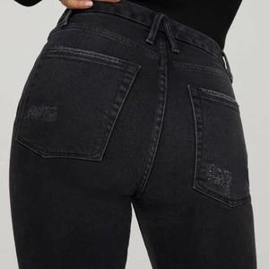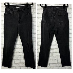 Good American Jeans Good Classic Straight Leg High Waist Ripped Stretch Black 10