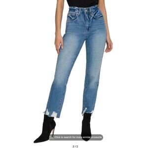 Good American Jeans Good Leg Jagged Hem Size 0 25 Straight Leg Blue641